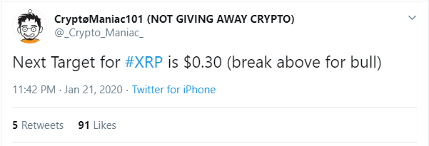 Meanwhile, a Twitter user named @crypto-Maniac says that the next target for XRP is $0.30.