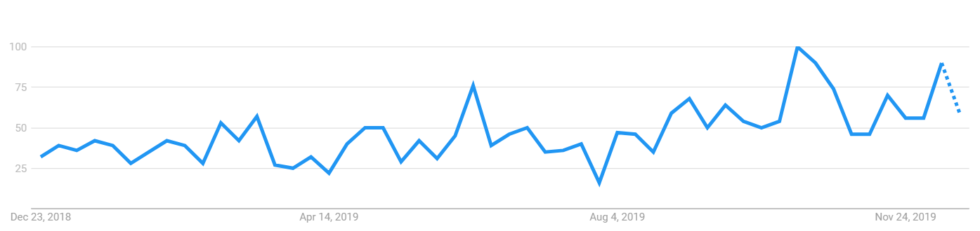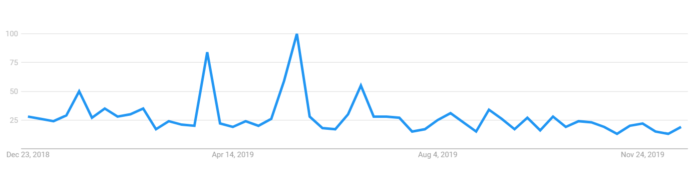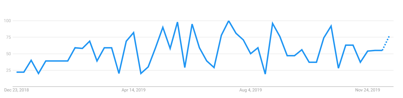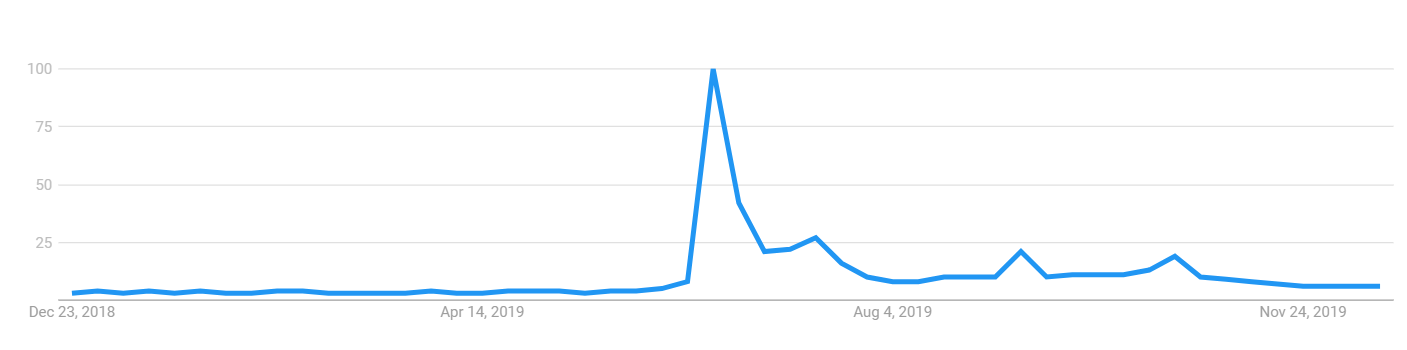 Bakkt shares a similar search volume trajectory with Facebook’s Libra. The searched volume spiked when Bakkt was launched but after that, as the volumes could not prove influential then the interest rate started to decrease.
