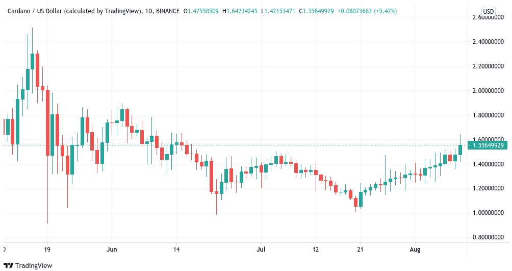 Today, Cardano‘s native token, ADA, gained almost 7%, which moved it close to its multi-month peak price. Per TradingView and Cointelegraph data, ADA is attempting to break out of its resistance levels to attain $1.61, which would be its peak price since mid-June.