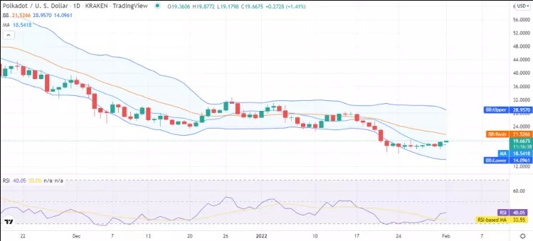 The intense buying efforts by the bulls have caused DOT’s price to surge to $19.67. The analysis from the 24-hour timeframe shows that if this buying pressure is sustained, a bullish crossover between the 20-day and 50-day EMA will likely happen.