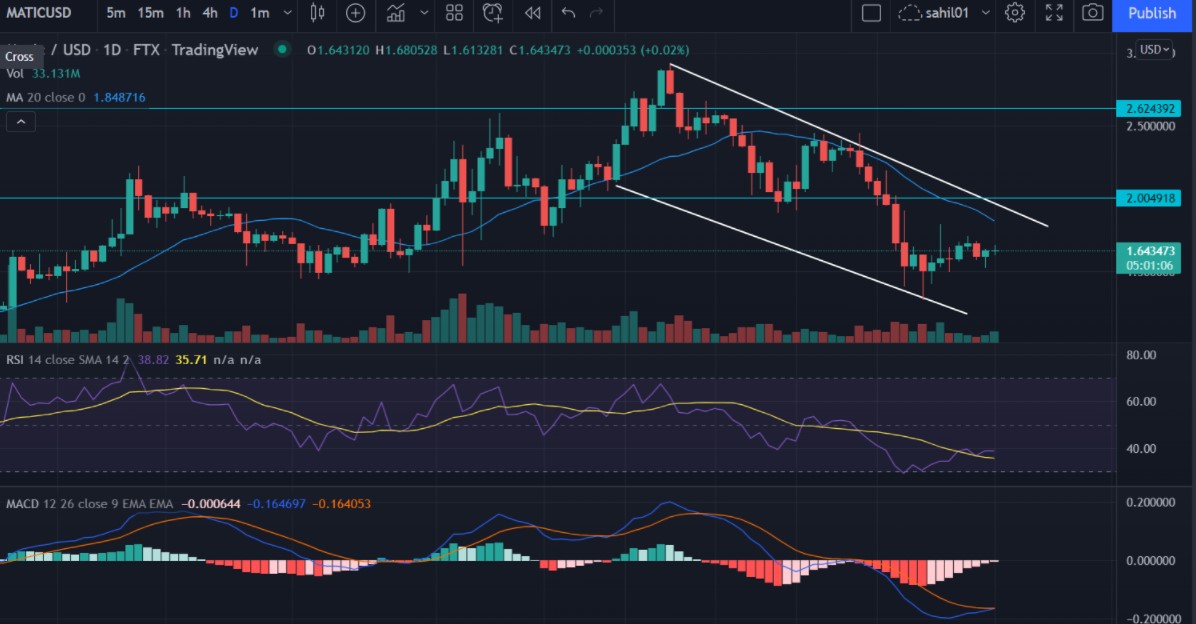 The Polygon native token will need a massive effort from the bulls to break out of its sub-$2 levels in which it has remained in the last ten trade sessions. Investors can take entry positions once the MATIC price is clearly over the upper boundary of the $2.003 price level. MATIC currently trades at $1.65.