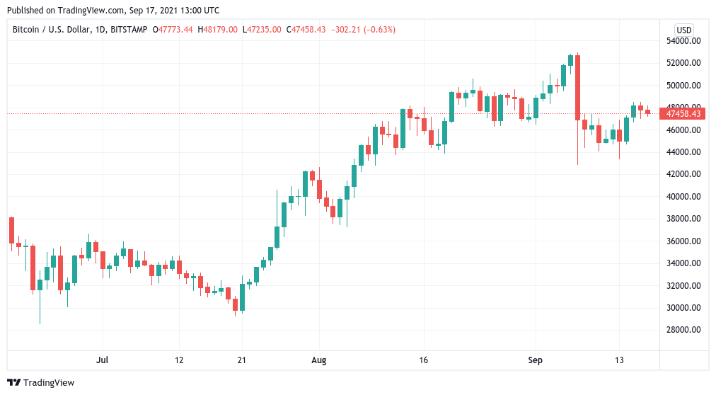 Bitcoin is currently ranging at the $47k zone, about 13% shy of its recent all-time high. Altcoins have remained non-committal to the assertions made by analysts on BTC with the largest altcoin by market cap, Ethereum losing 5% off of its price.