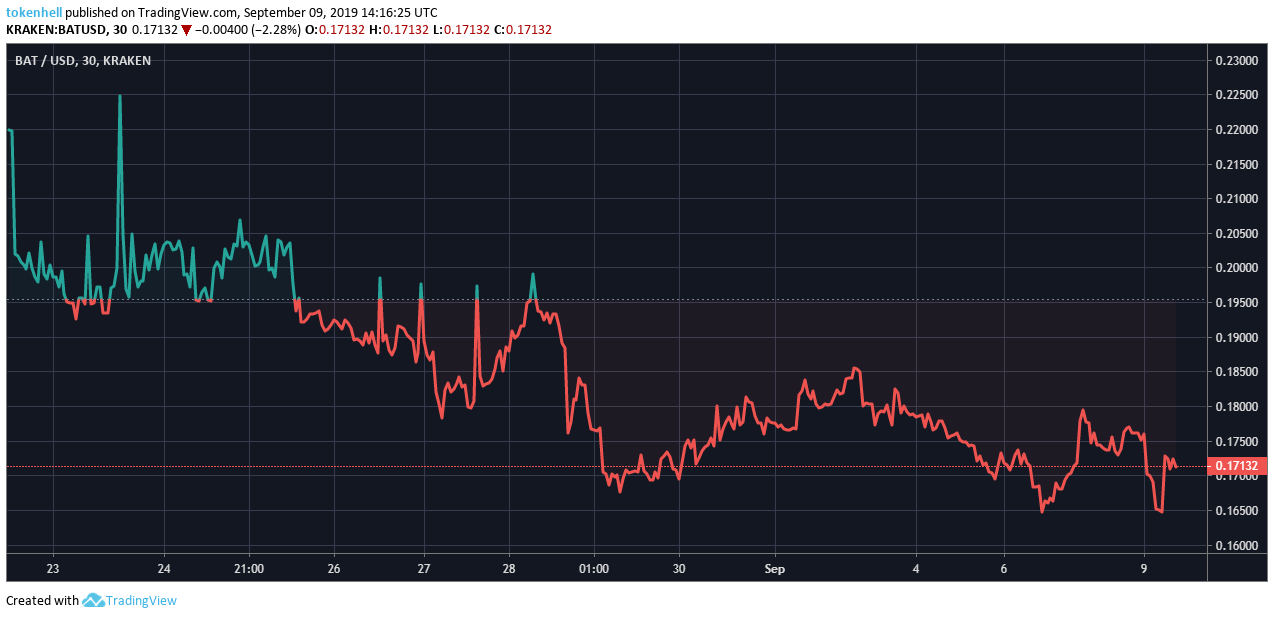 The one-month performance of BAT shows that the coin has been under the baseline showing a bearish trend. The highest value of the coin during the period of one-month was $0.22 on 23rd Aug 2019. After that till now, the price of the token did not cross this mark and has mostly remained in the reddish zone. From the 23rd Aug, the value of the coin has plummeted down by -21.24%.