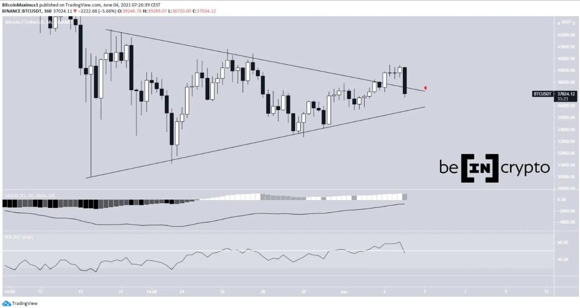 BTC back within the triangle. Source: Beincrypto and TradingView