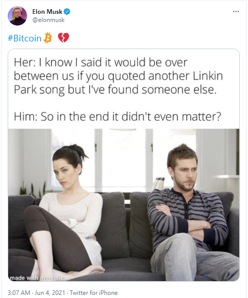 One possible reason Bitcoin couldn’t sustain its breakout might be attributed to Elon musk’s tweet this morning. The leading cryptocurrency price fell by almost $2,100 within few hours after musk’s bitcoin tweet. The electric car billionaire tweeted “#bitcoin,” a broken heart and the image of a couple about to break up. While it is unclear the motive behind musk’s tweet, it is clear that his tweet often influences bitcoin price. It is yet unclear how musk’s tweet will influence the “largest bitcoin event in history” (the 2021 Miami bitcoin event), which is scheduled to start today. Even if the credibility of musk over the crypto bitcoin is in doubt, his influence on crypto price movements is never in doubt.