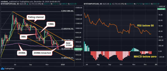 After this breakdown, it seems that the selling pressure for Bitcoin would increase and there is a chance that the leading crypto asset may drop below its November low of $6500 as the coin has found acceptance under the 200-period moving average.