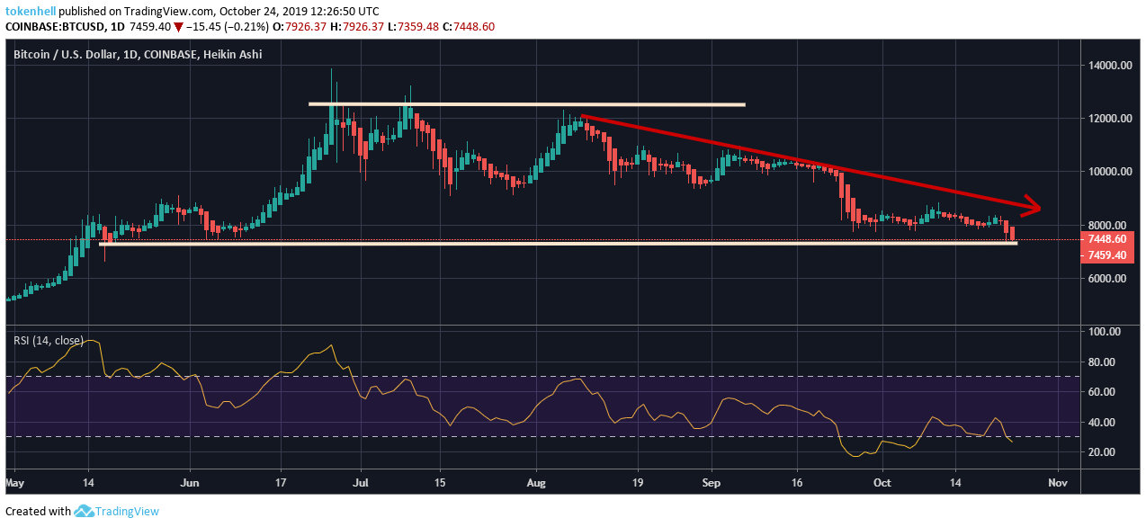 Bitcoin is testing below $7,500 that was recorded yesterday when a sudden slump of $400 happened in just a few hours. The lower position of the Bitcoin is not an unnatural move as this was the expected result and we have discussed in the last price checkup of the digital gold.