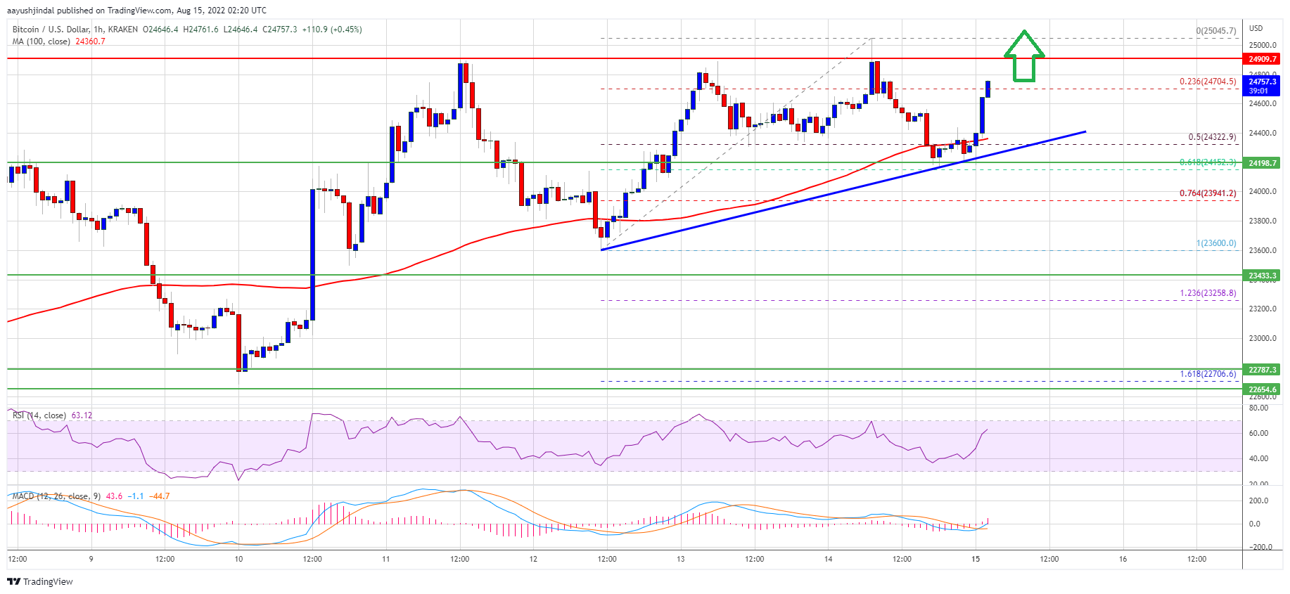 Bitcoin’s uptrend is inching over $24,500 against the USD. The flagship digital token is set for bullish momentum if it clears the $25,000 resistance.