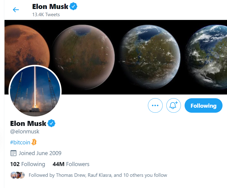 Bitcoin Is Now On The Twitter Page of Tesla CEO