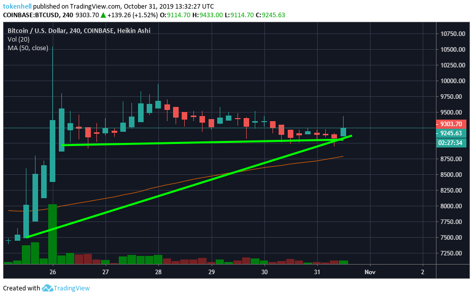 To touch the mark of $10,000 bitcoin still needs to overcome the small resistance levels. The first resistance level will be present at $9,500 and, similarly, second and third resistance levels will hedge the pathway at $9,600 and $9,800. However, these hedges don’t have enough stamina to block the trending path.