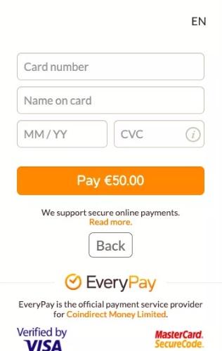 After pasting your amount to purchase coins, the next requirement is to give your credit card details.