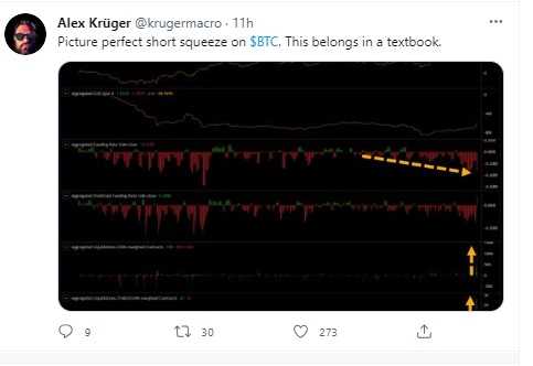 He even hinted that his electric car company might sooner than later start accepting Bitcoin payments again. The third catalyst behind Bitcoin’s recent price surge is what ace crypto analyst, Alex Kruger, has termed a “picture-perfect short squeeze.”