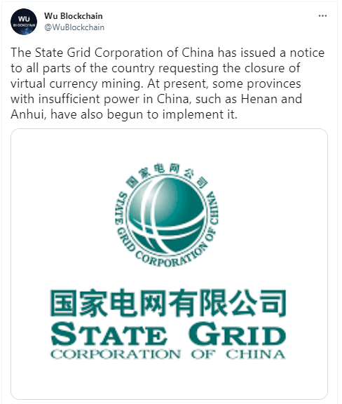 Celebrated Chinese crypto analyst Collins Wu (Wu blockchain) also revealed that the central government had dispatched a letter to all provinces in the country through the state grid corporation. The letter informed them to ensure that there are no longer crypto miners in their regions.