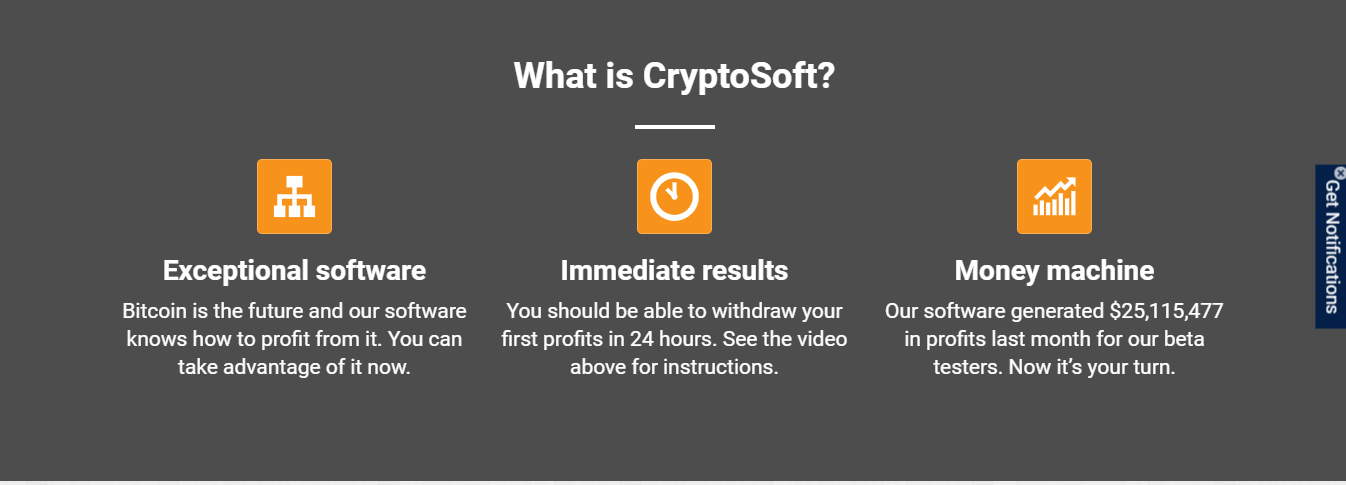Crypto Software is also known as CryptoSoft. It is an innovative, algorithmic software that works independently and provides its users unmatched trading success.