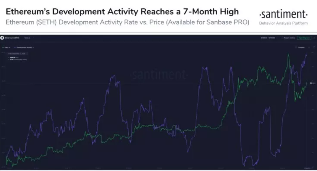 “Ethereum is reaching #Github development rates not seen since February (a 7-month high)! $ETH continues to make its case as the most highly innovative network in #crypto, including the many ERC-20’s under its umbrella.”