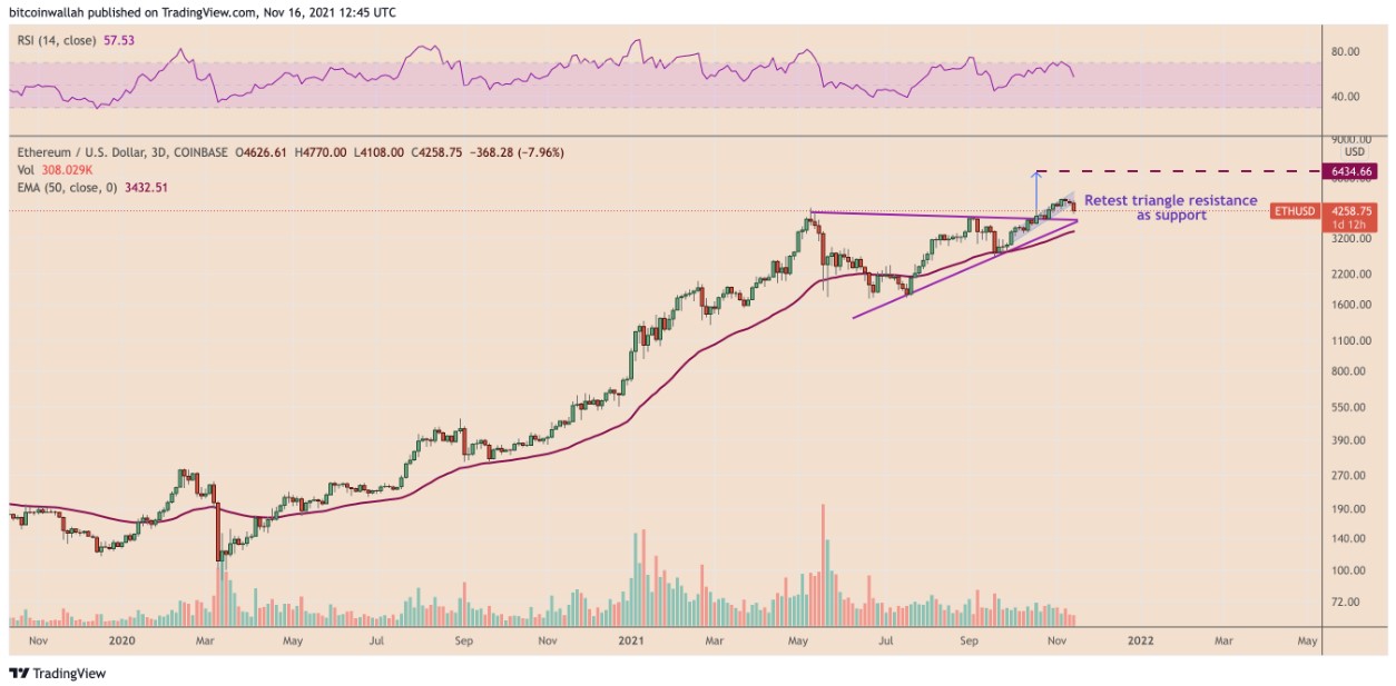 Ascending Triangle Setup On ETH/USD 3-Day Chart. Source: Tradingview
