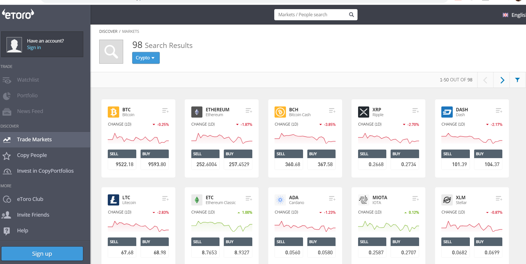 Then, how do eToro take their cut? The broker has opted for the spread model to make its profit, which is the difference between the bid price and the sell price. The reason eToro has been able to draw in millions of traders all over the world is because they have very competitive spreads to offer. They are some of the lowest in the market and so you will not have to give away most of your profits. As far as leverage is concerned, it can vary because it depends on the asset you are trading.