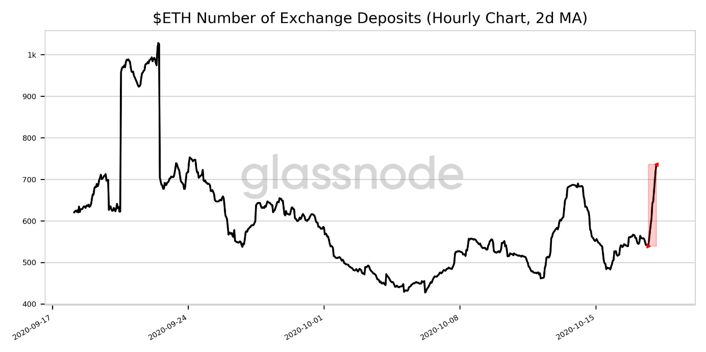 The blockchain analytics firm Glassnode has presented new data which shows that the Ethereum (ETH) number of exchange deposits has been increasing significantly during the recent time. According to the Glassnode’s shared data, the number of deposits made in ETH to cryptocurrency exchanges surged high by more than 36 percent within the duration of just 24 hours recently.