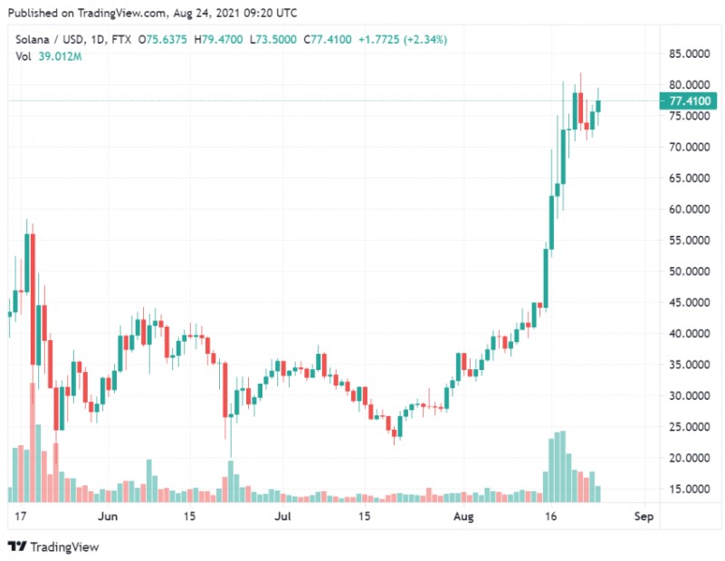 This last week 33% of total institutional investments in crypto-related projects were Solana-based. The newly released Coinshares report on virtual assets reveals that between August 15 and 20, 2021, Solana inflows were estimated to be $7.2m.