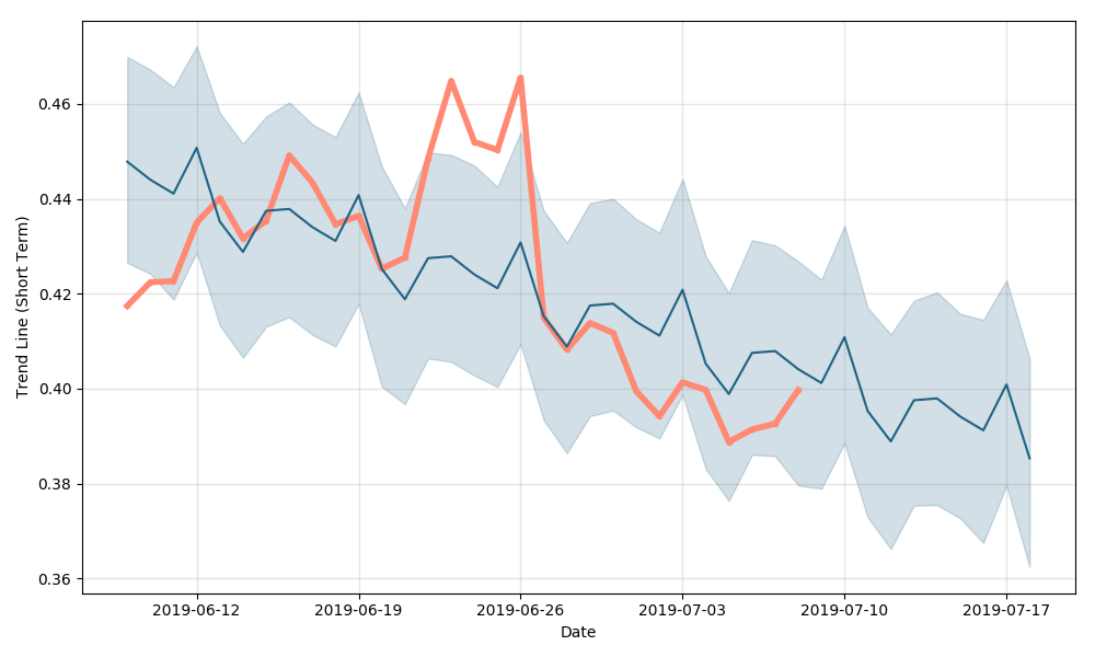 - The respective support levels are $0.380, $0.375 and $0.368.