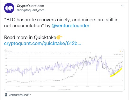 Cryptoquant Bitcoin Hash Rate Tweet. Source: Twitter