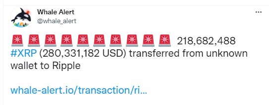 Whale Alert $281K XRP Transfer. Source: Twitter
