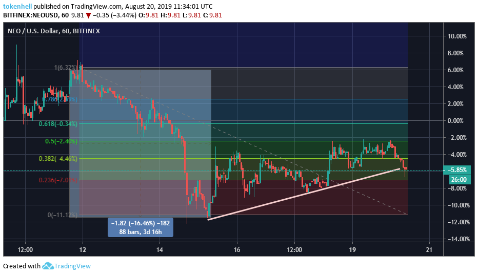 The markets of digital assets are under the shadow of a temporary bearish trend zone from the previous 24-hours. Similarly, the price zone of NEO is also in the negative trend but this bearish trend is continuous from 11th August. The price and data range from 11th August to 15th August indicating the sudden decrease in price and recorded -16.4% decrease in value of the token.