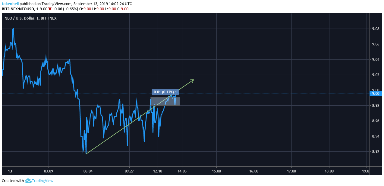Neo Price Prediction : The coin has shown a slight recovery and it seems that it will now go into the bullish zone as the price has bumped up and is now holding the mark of $8.97 USD, while showing the upward movement.