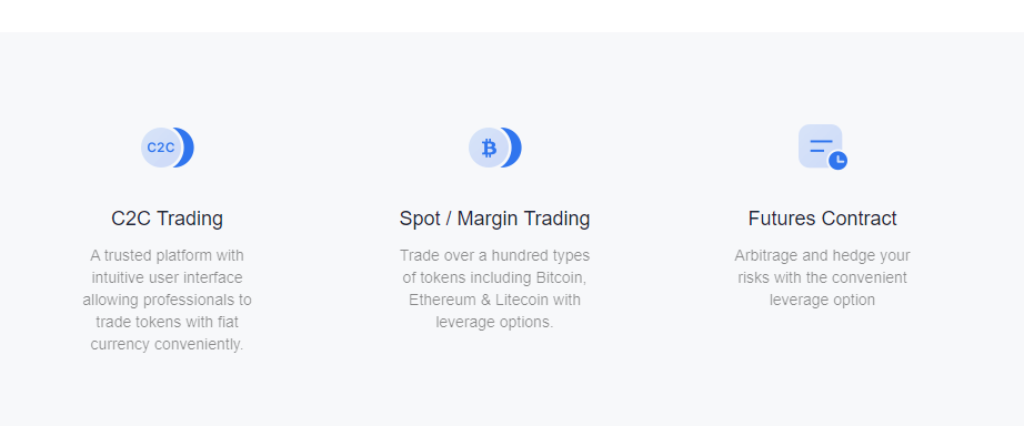 The exchange offers different types of trading options on the platform. The main trading options on the platform are: