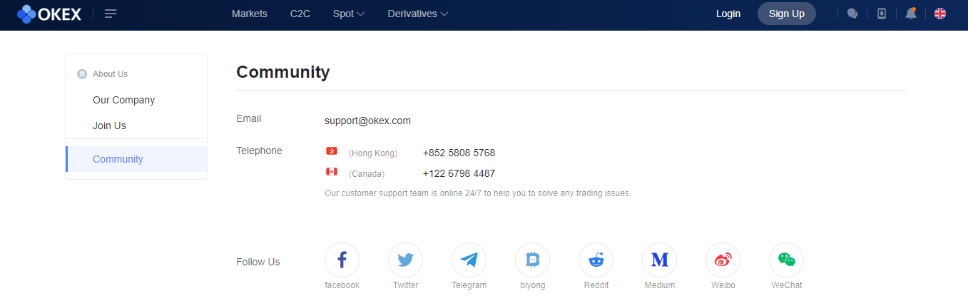 The 24/7 service is available for the customers. For further details, Users can also visit the official email of the exchange: support@okex.com