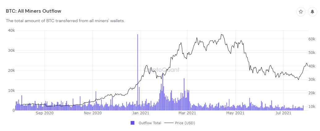 Another tool that confirms miners’ holding position is CryptoQuant’s miner outflows. The chart shown below proves that total miner outflows haven’t exceeded 5,000 in the last 60 days.