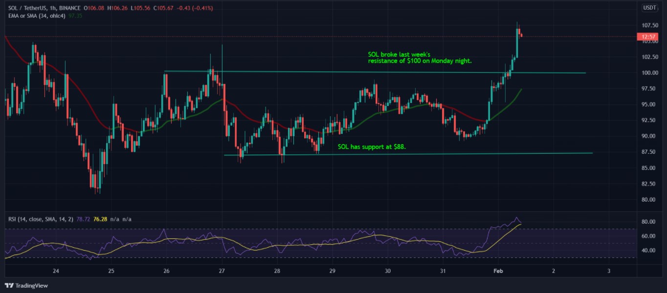 Following this listing, it is the first time Coinbase will list tokens of non-Ethereum built projects. It usually lists the tokens of Ethereum-built projects or governance tokens of top Ethereum rivals such as Solana and avalanche. Hence, the SOL price started the day at $105.9 despite trading at less than $89 24 hours earlier.