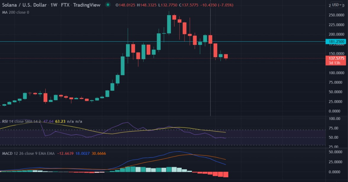 As the SOL price continues to decline, the RSI has remained the oversold region while the MACD has also remained in the negative area. However, if SOL could be bullish due to market factors, its next crucial resistances would be the $157.5 and $181.30 levels.