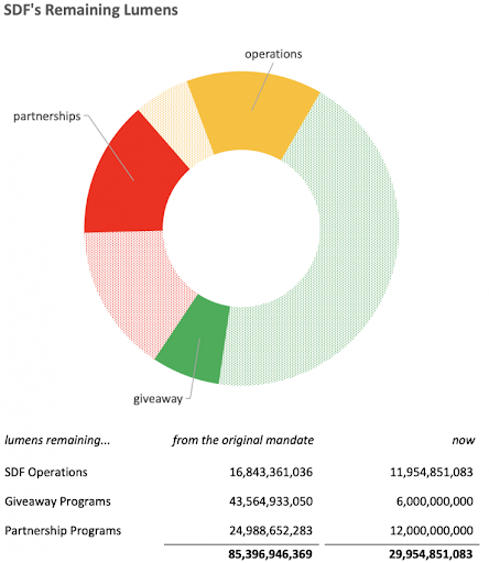SDF can be leaner and do the work it was created to do using fewer lumens. Over the years we’ve also seen that giveaways and airdrops have diminishing effects, especially in the outsized amounts our original plan was designed to support. So a smaller public-facing program would have just as much impact.