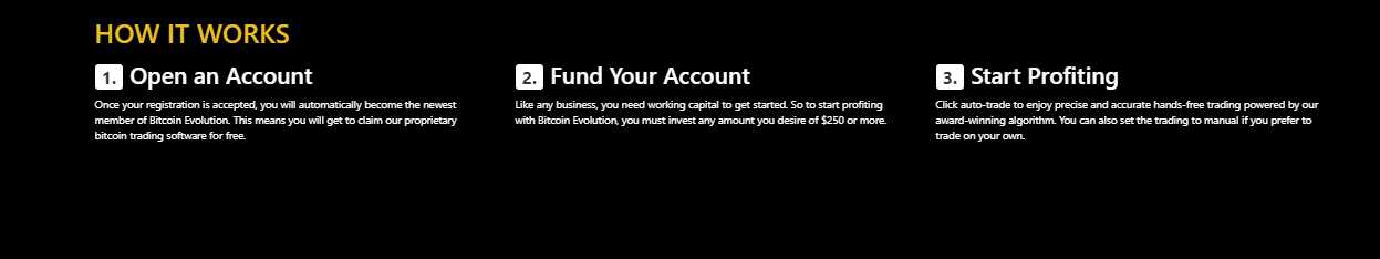 After your registration is completed, you would automatically become the newest member of Bitcoin Evolution.