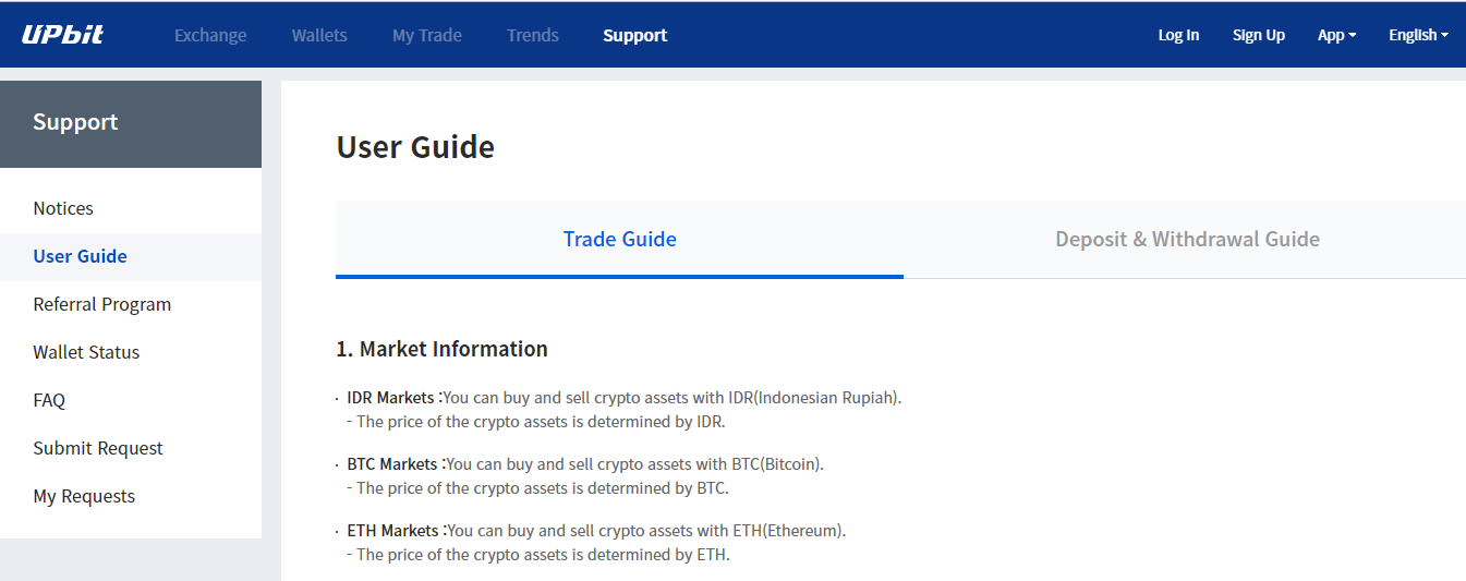 Users can get any kind of guideline through this support section provided by the Upbit exchange.