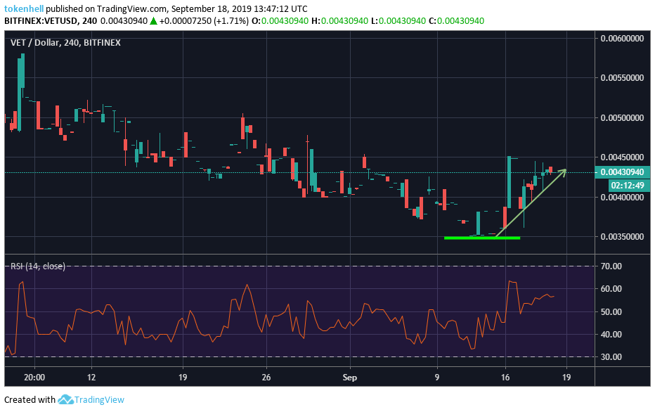 The current rate of VET at the time of writing is $0.0043 with 5.04% in 24-hours.